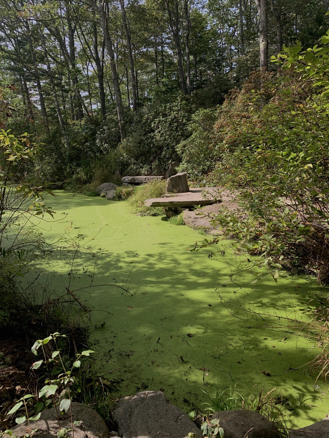 I'm writing to you from a room with many windows on one side, overlooking a small park and some water. I'm seated at a small rectangular desk in the corner, close to the windows.